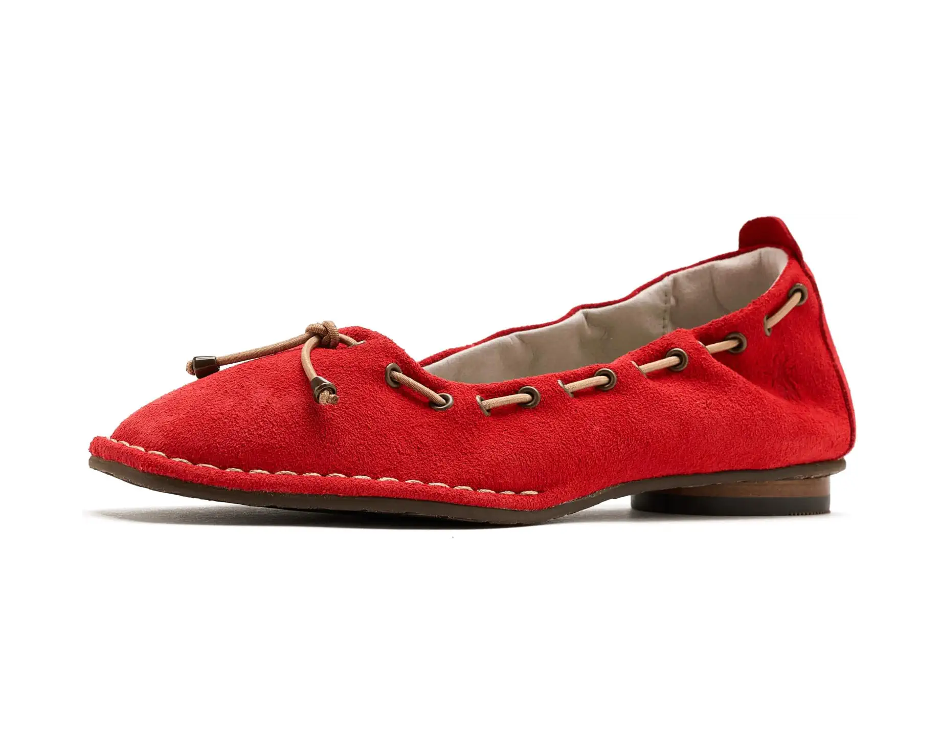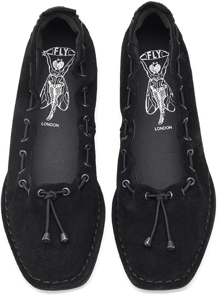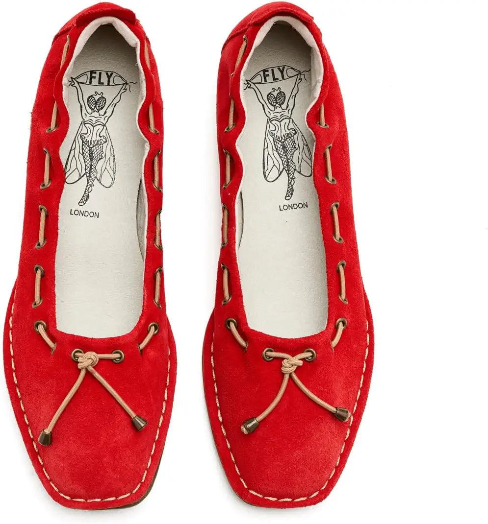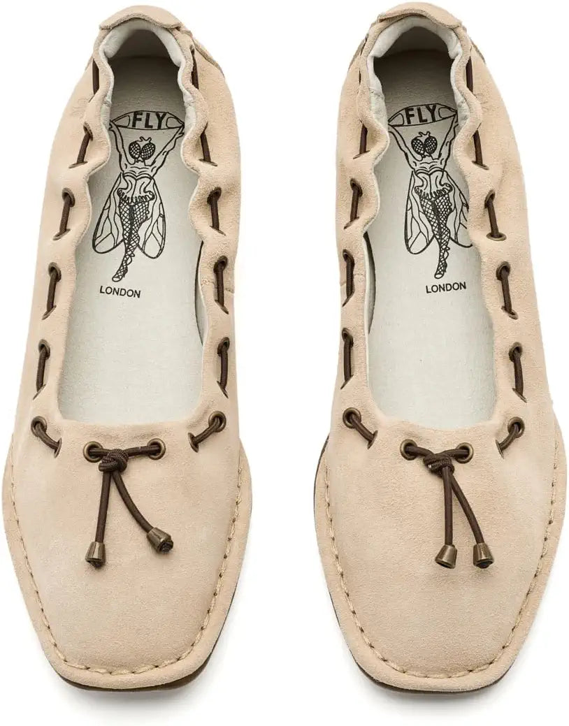 • This FLY LONDON® Ballet is stylishly designed in a squared-toe silhouette with a soft leather upper, beautifully detailed with laces trimming at the top line. The slip-on style ballet features a polyester lining, a heel-to-toe cushioned foam insole, and a slight block heel for added style.