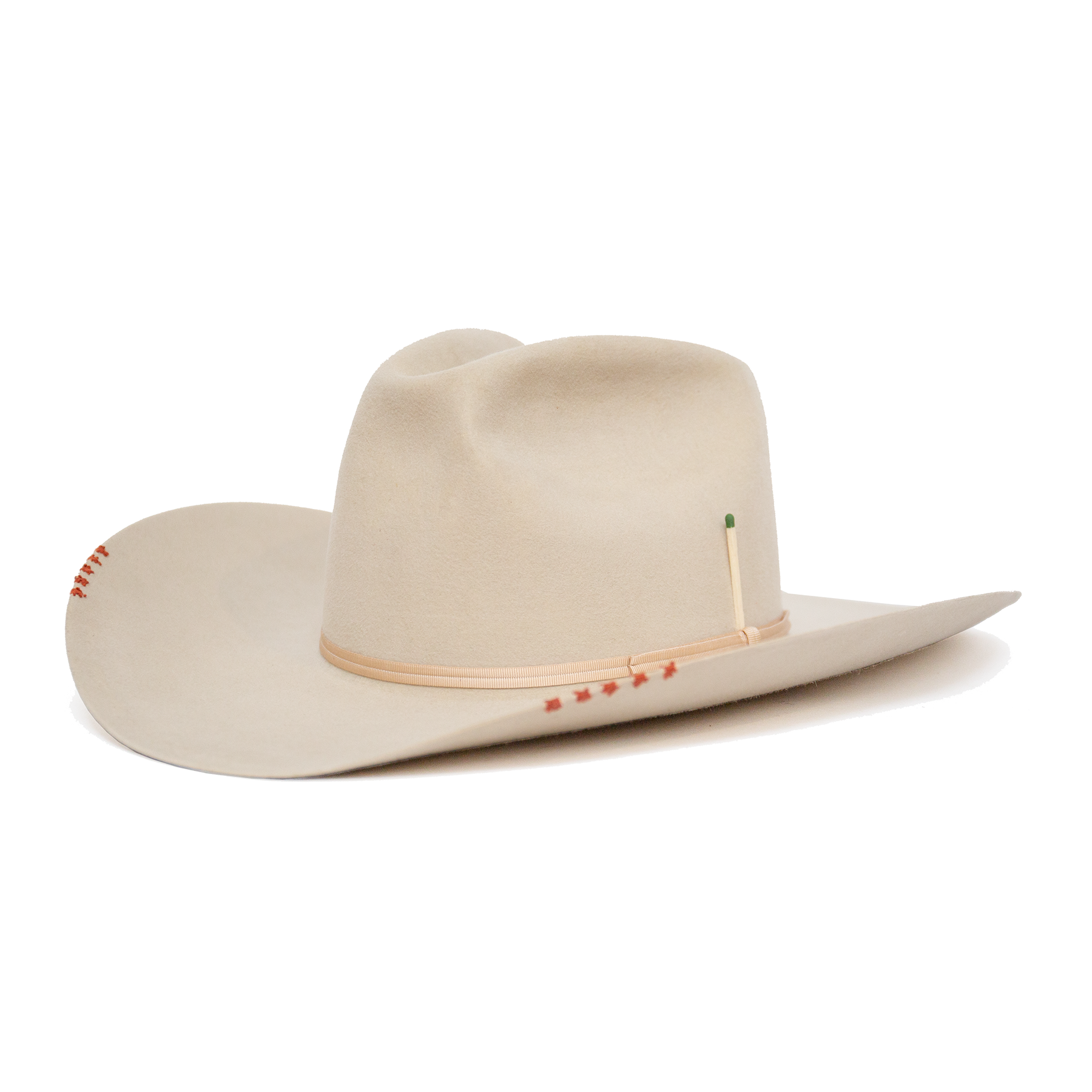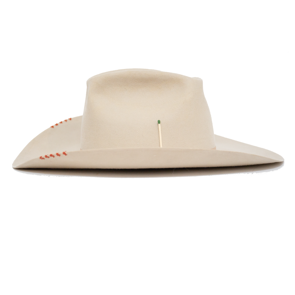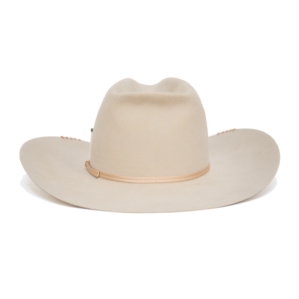 Tonal 2-ply ribbon band and bow Hand-embroidered horses and stitching on brim
